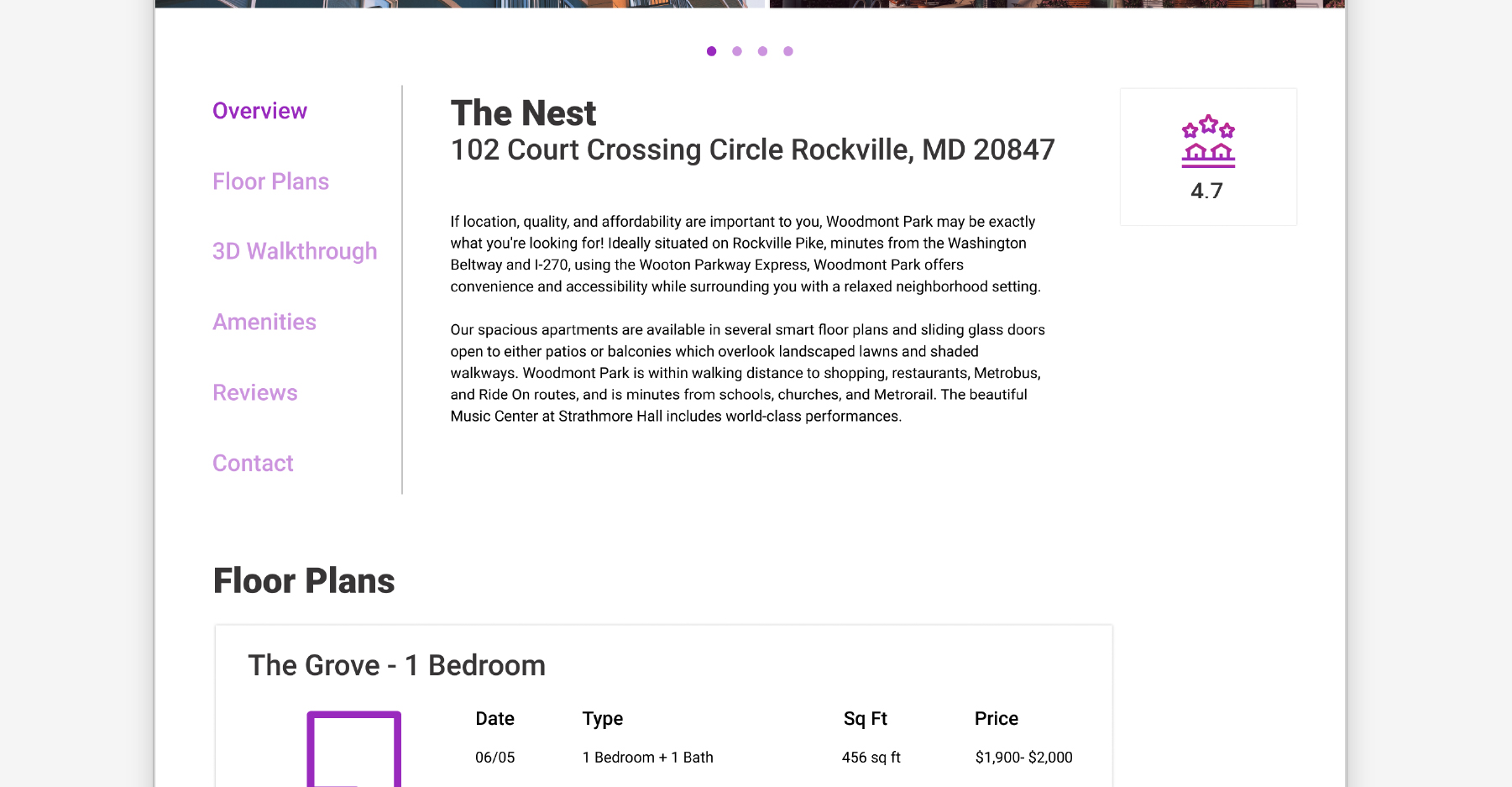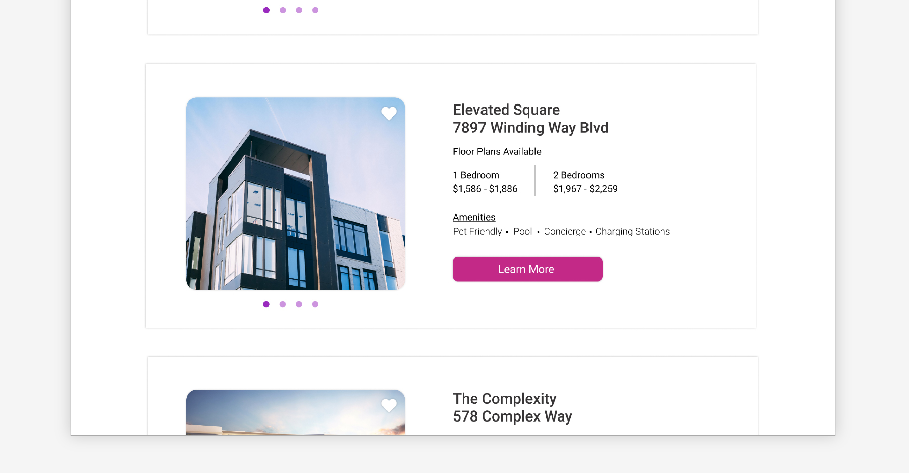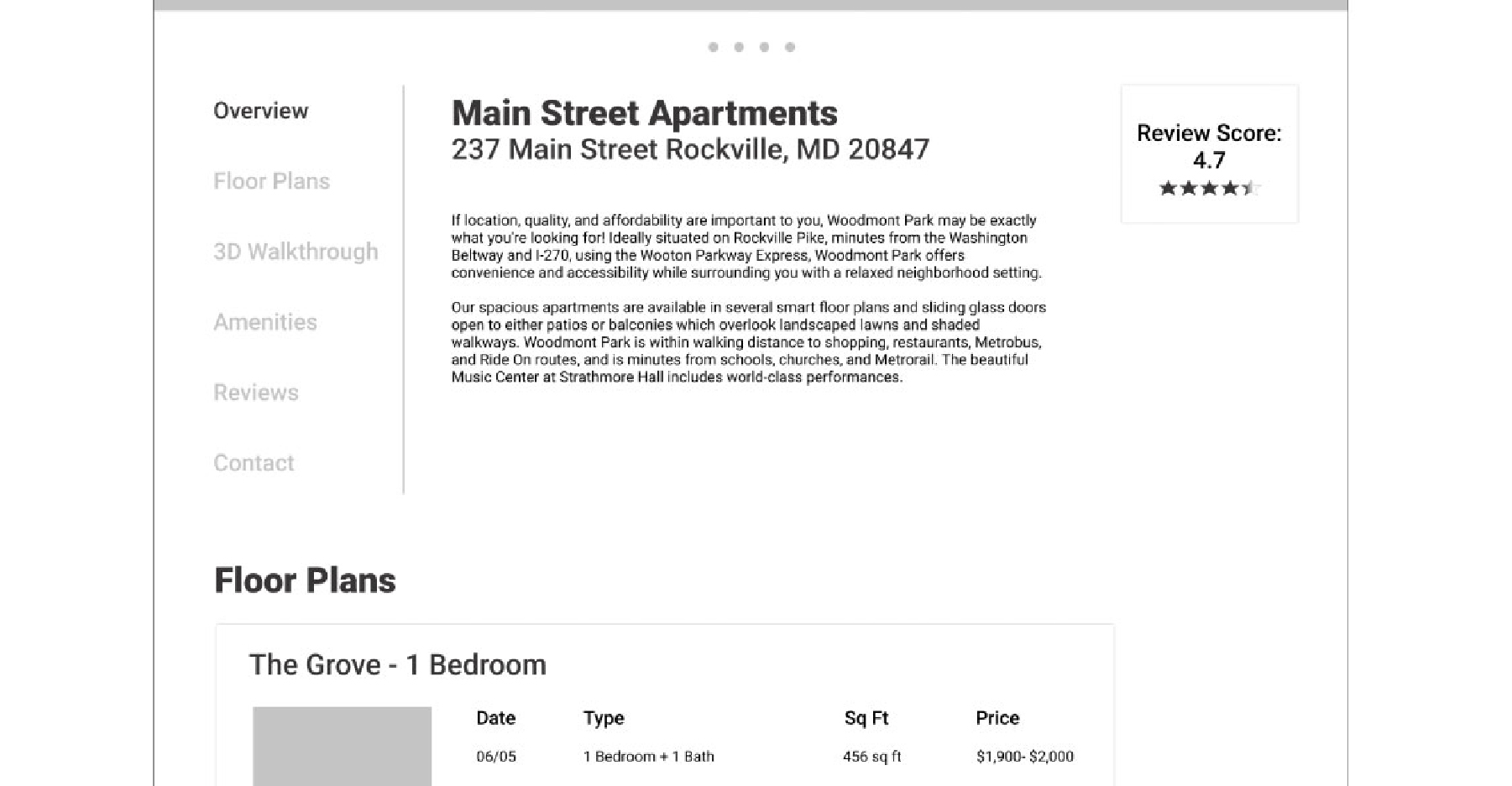 UI Mockups for the apartment site