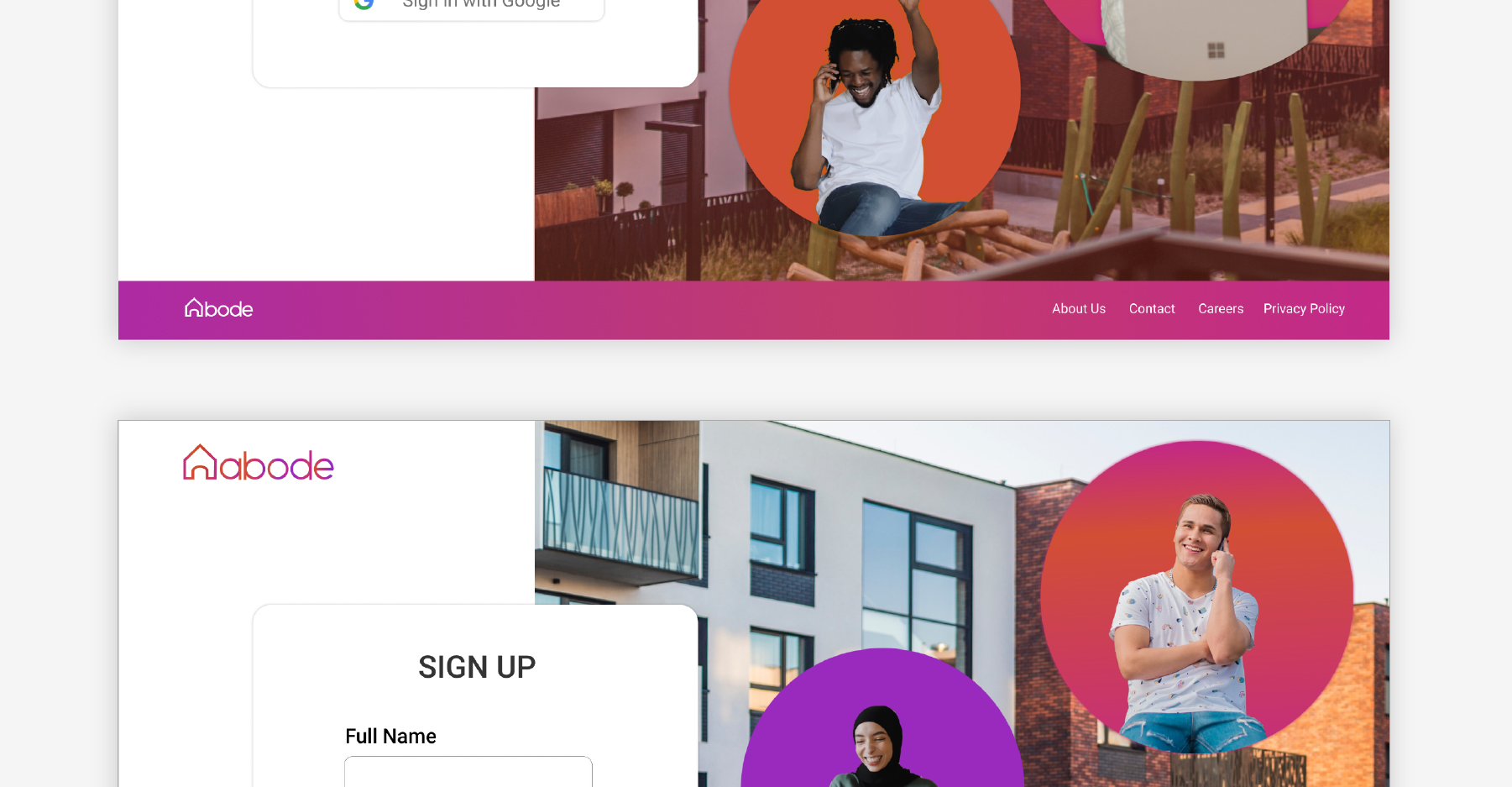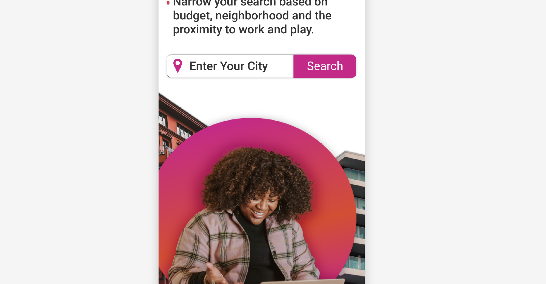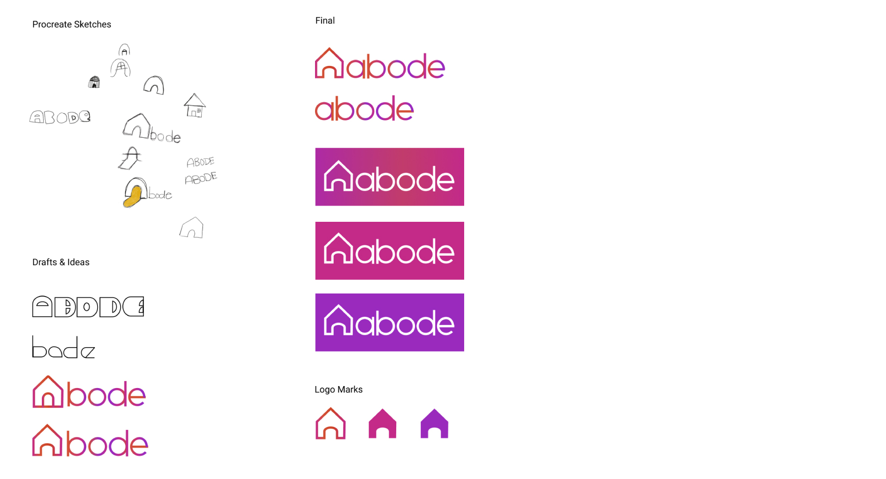 As someone who likes to illustrate in my spare time and play around with organic shapes, I knew I wanted the logo for the apartment finder to be fluid and playful. I quickly decided I wanted the name and logo to relate to the idea of home. I also wanted to use bright colors, and through the use of photography, be very inclusive and relatable.