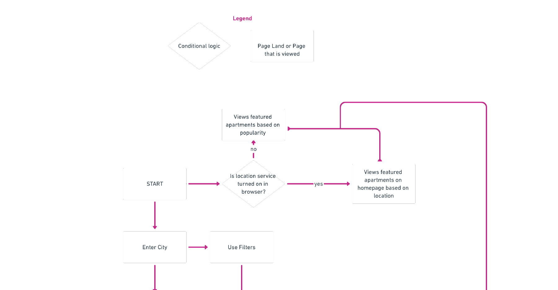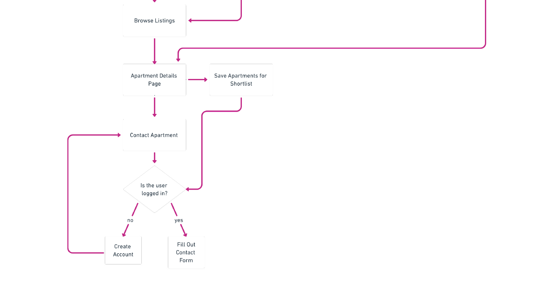 Next, I wanted to think more about how the user moves through the site and accomplishes the goal of contacting apartments so I created a task flow.